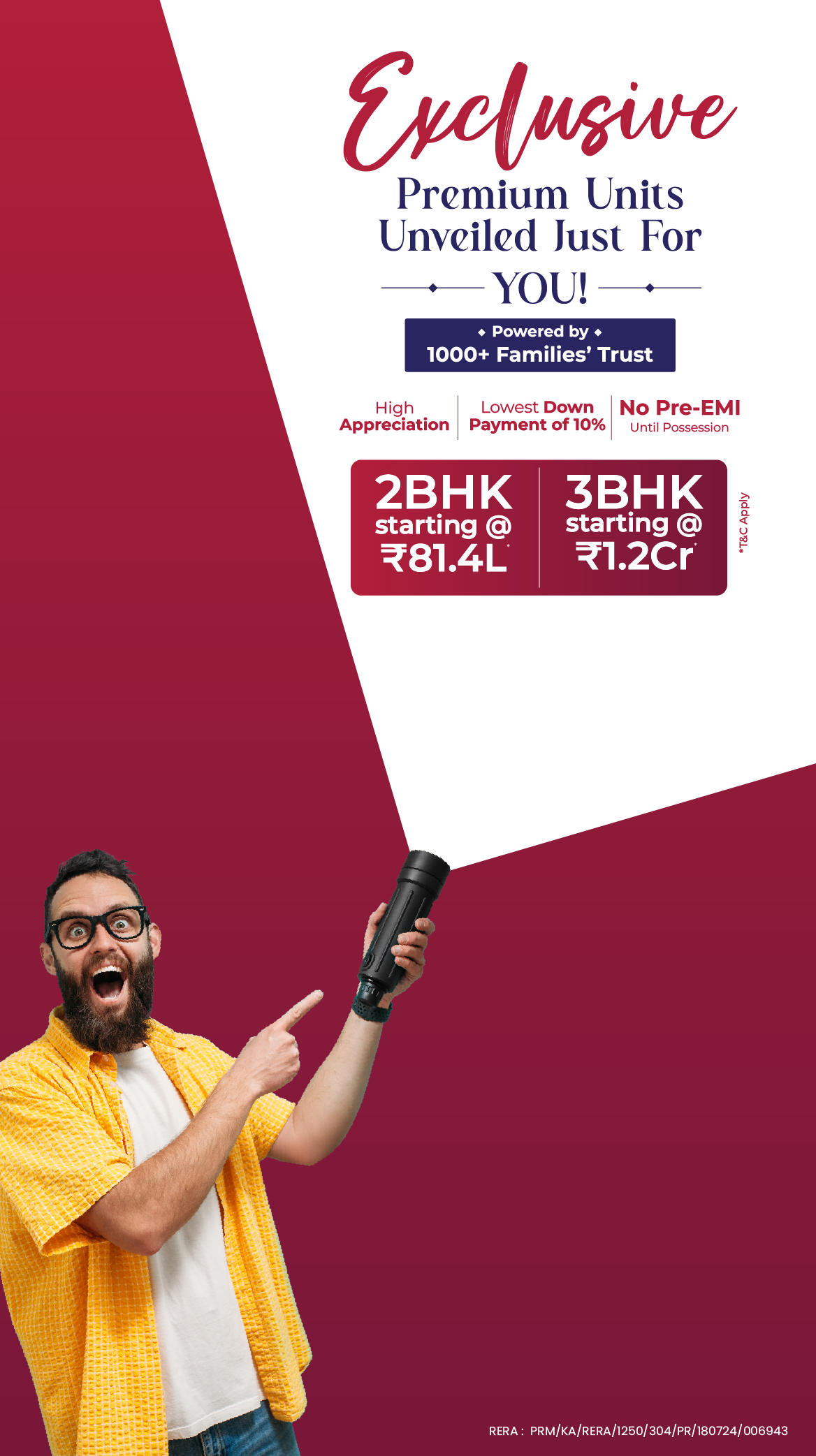 You can schedule a visit by calling +91 888 420 9999 or enquire now to book your apartment.